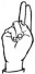 На ћирилици написано НИНА ПЕЛАГИЋ састоји се из 11 слова [?]. Исписано ћириличном једноручном азбуком за глувонеме: